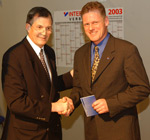 Bei strahlendem Wetter wurde der erste Spatenstich zum neuen IOZ gesetzt. Auf die Initiative des Mittelstands ein Gläschen Sekt. V.l. Vorstand Hartmut Fröhlich, Bürgermeisterin Margret Mergen, Aufsichtsratsvorsitzender Knut Krumholz, Architekt Gustav Marohn, der Sprecher der mittelständischen Bauarbeitsgemeinschaft Payr, Amos, Kurfess und Schlagenhauf", Planer, Vorstand Klaus Jost. Für 20 Jahre Mitgliedschaft geehrt: INTERSPORT Petermann aus Schwäbisch Hall. V.l. Vorstand Klaus Jost, Aufsichtsratsvorsitzender Knut Krumholz, Mitinhaber Andreas Schoell, Vorstand Hartmut Fröhlich. Vollversammlung Systempartner INTERSPORT v.l. Vorstand Hartmut Fröhlich, Beitratsvorsitzender Herbert Krahn, Kempen, die beiden ausscheidenden Beiratsmitglieder Wolfgang Czech, Rotenburg a.d. Wümme, und Wolfgang Seeßle, Gundelfingen, Vorstand Klaus Jost. |