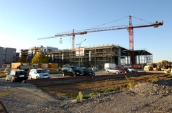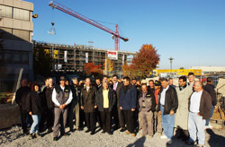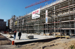 Oktober 2003 INTERSPORT feierte Richtfest beim IOZ Heilbronn - Die INTERSPORT Deutschland hat eine wichtige Etappe beim Bau des INTERSPORT Order Zentrums IOZ in Heilbronn bewältigt. Die Vorstände Hartmut Fröhlich und Klaus Jost und die Mitarbeiterinnen und Mitarbeiter der INTERSPORT Deutschland eG feierten am Mittwoch, den 15. Oktober 2003 um 16 Uhr zusammen mit den Vertretern der Bauarbeitsgemeinschaft Payr, Amos, Kurfess und Schlagenhauf und den Architekten Gustav Marohn und Clemens Roth aus Stuttgart Richtfest für das neue IOZ. Die größte Investition, die die INTERSPORT in den letzten 10 Jahren in Heilbronn getätigt hat. Das Bauvorhaben hat die INTERSPORT bewusst an eine Arbeitsgemeinschaft mittelständischer Unternehmen aus der Region Heilbronn vergeben, wohl wissend, dass die schwierige Situation in der Baubranche besonders hart die regional operierenden Betriebe trifft. Die Architekten Gustav Marohn und Clemens Roth umschreiben das Bauvolumen so: Das neue INTERSPORT-Order- und Veranstaltungszentrum umfasst 103 000 Kubikmeter umbauten Raums und eine Nettofläche von 16 000 Quadratmetern. Davon stehen 7000 bis 8000 Quadratmeter Fläche für die Mitglieder zum Ordern und für Veranstaltungen zur Verfügung. Die gesamte Konstruktion des Gebäudes besteht aus Stahlbeton. Die Messehalle wird mit einem Stahldachtragwerk mit Trapezblecheindeckung überspannt. Das Hallendach ist für eine Fotovoltaikanlage ausgelegt und wird zum Teil begrünt. In der unteren Ebene des IOZ liegen eine Messehalle mit zirka 4000 Quadratmeter, zusätzlich Foyerbereiche, Garderobe, Lagerräume und Technik sowie der Anlieferhof mit Tiefgarage. Die Messehalle im Erdgeschoss ist zusätzlich für Sportveranstaltungen geeignet und besitzt ein Veranstaltungszentrum für 570 Personen mit Bühne und Umkleiden, Foyerbereiche mit Garderobe, Cafeteria mit Küche und einen Dienstleistungsbereich. Im 1. Obergeschoss befinden sich Besprechungsräume und Büros für die Mitgliederbetreuung. Im 2. Obergeschoss befinden sich mit 2000 Quadratmetern die Kombibüros für die Mitarbeiterinnen und Mitarbeiter im Einkauf. Bei der Planung der Büros wurde auf eine vielseitige Verwendung geachtet. Baubeginn war Februar 2003. Im Frühjahr 2004 wird das neue Order Zentrum bezogen. Die geplanten Baukosten liegen bei 15 Millionen €.