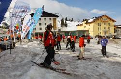 Es waren wunderbare, föhnige und launige Sonnentage, gekrönt von 30 Zentimetern Neuschnee, die am letzten Tag für Tiefschneevergnügen pur sorgten. "Alpenglühen", die große Event-Aktion der INTERSPORT Deutschland eG für die INTERSPORT-Active-Card-Stammkunden Anfang April in Obertauern, dem Wintersport-Eldorado des Salzburger Landes, war ein voller Erfolg. Zur zweiten Auflage dieses INTERSPORT-Winterhappenings kamen bereits 1000 Teilnehmerinnen und Teilnehmer. "Ein sensationeller Erfolg, den wir mit diesem Super-Event erzielen, das unsere Kunden zugleich bereits zum größten Skitest Deutschlands gemacht haben", kommentiert INTERSPORT-Vorstand Klaus Jost das Alpenglühen. Er überzeugte sich dabei selbst auf Tecno Pro-Carvern, was auf bestens präparierten Pisten INTERSPORT’lich in Obertauern abging.