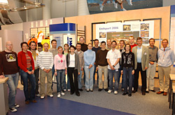 Das Modell eines INTERSPORT-CI-Geschäfts im Messe- und Eventcenter redblue diente den angehenden Führungskräften als Kulisse für das obligatorische College-Foto. |