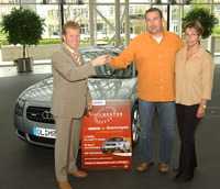 Heilbronnn - Mit der Übergabe des Audi TT-Coupés im Wert von 40 000 Euro im Audi-Zentrum Ingolstadt an den glücklichen Gewinner Michael Rudolf und seine Frau Martina aus Oldenburg in Oldenburg fand eine gelungene Kooperation der INTERSPORT Deutschland eG mit dem ZDF und Audi ihren erfolgreichen Abschluss. Begonnen hatte sie mit dem gemeinsamen Aufruf im ZDF, den Sportler des Jahrhunderts zu bestimmen. Für die große Show mit Johannes B. Kerner gaben in den mehr als 1500 INTERSPORT-Fachgeschäften in Deutschland über 150 000 Kunden ihre Stimmkarten ab, mit denen sie dann Rennass Michael Schumacher zum Sportler des Jahrhunderts machten. In dieser Sendung ermittelte das ZDF auch den Gewinner des Audis, der von der INTERSPORT neben einer Menge großartiger Sachpreise als Hauptgewinn unter allen Teilnehmer der Wahlaktion ausgelobt wurde.